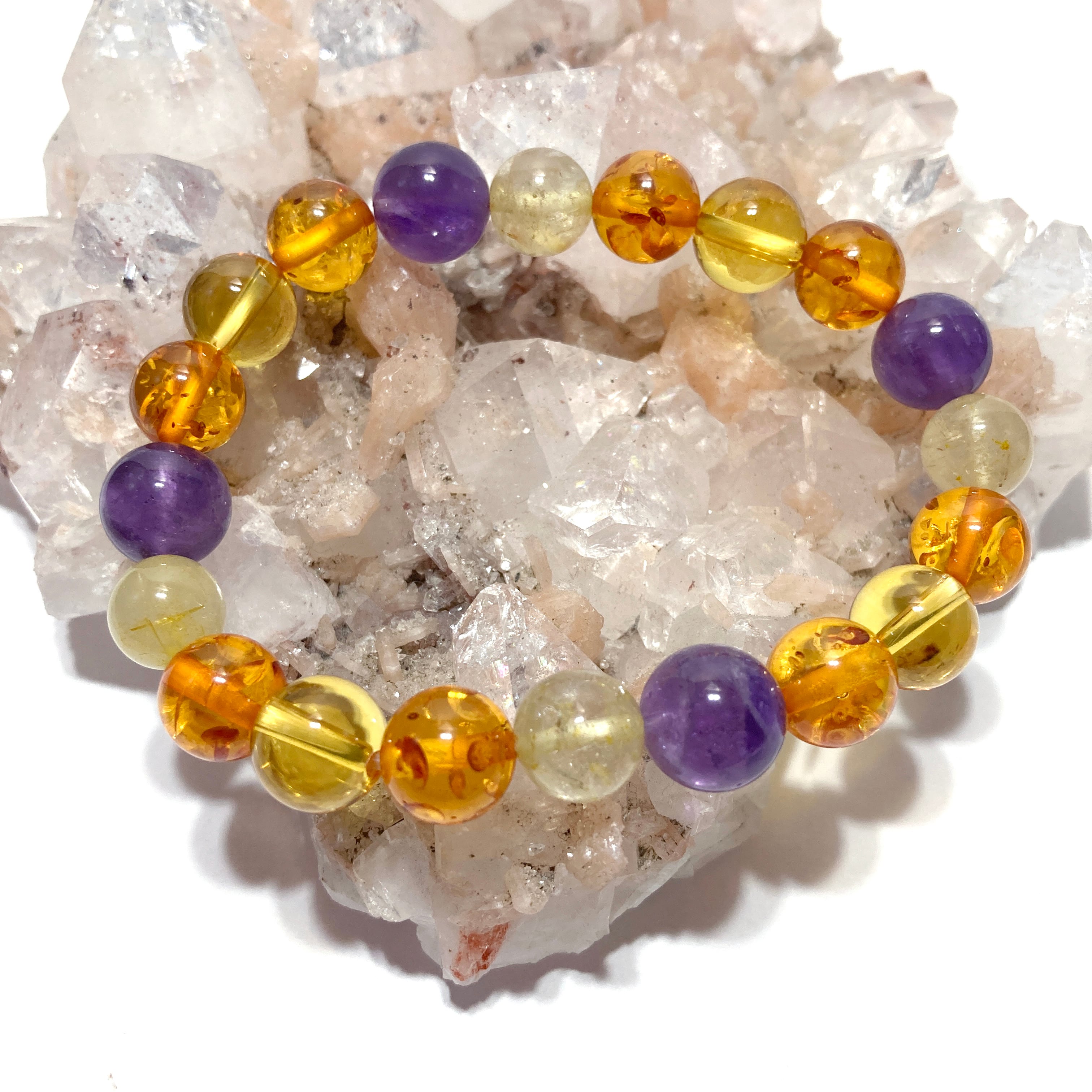 アメジスト・ルチルクォーツ ゴールド・アンバー(琥珀)・シトリン