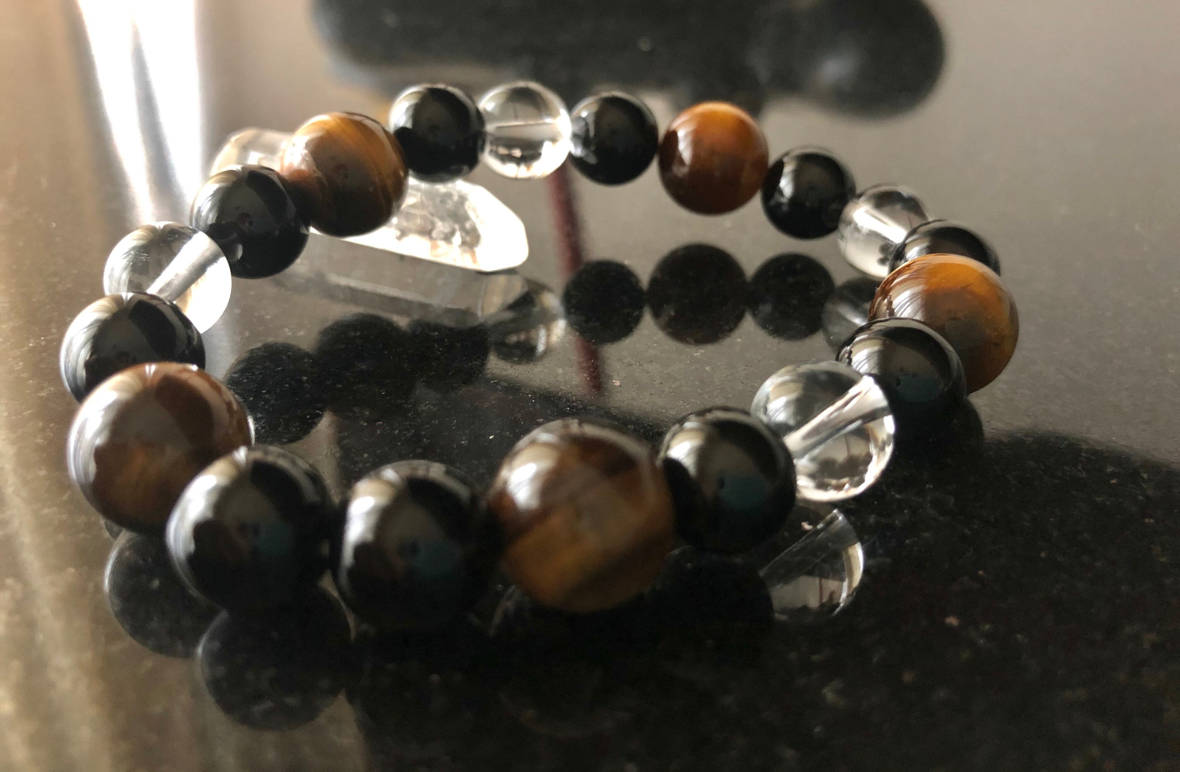 また、タイガーアイとオニキスの組み合わせは仕事運UPの組み合わせで、どんどんバイタリティーが湧き出すようなエネルギーの循環を生み仕事運を高めるでしょう。水晶も組み合わせていることから、より効果が発揮されるでしょう。