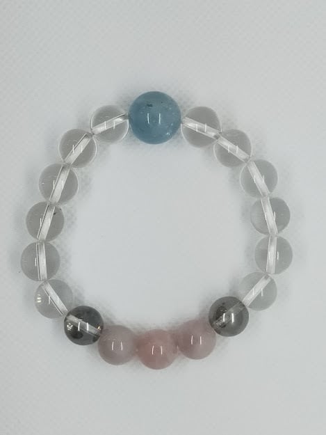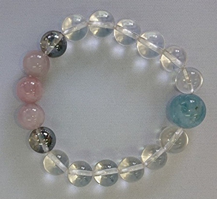 【送料無料】アクアマリン 水晶 シルバーオーラ マダガスカルローズクオーツ オリジナルブレスレット 10mm・14㎜
