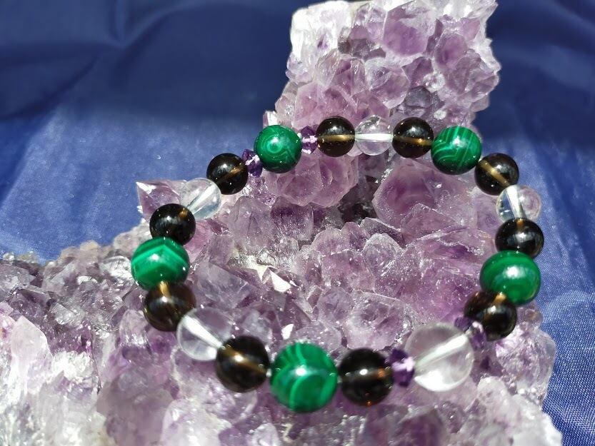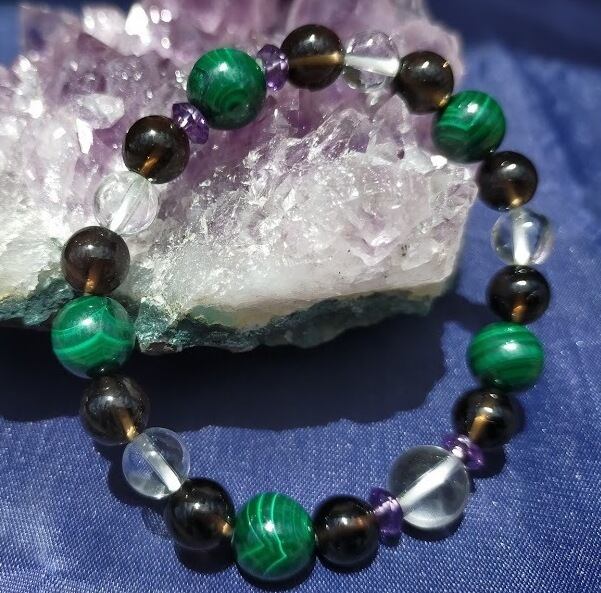 【送料無料】マラカイト 水晶 スモーキークォーツ 癒し 安眠 邪気払い ブレスレット 8.10㎜
