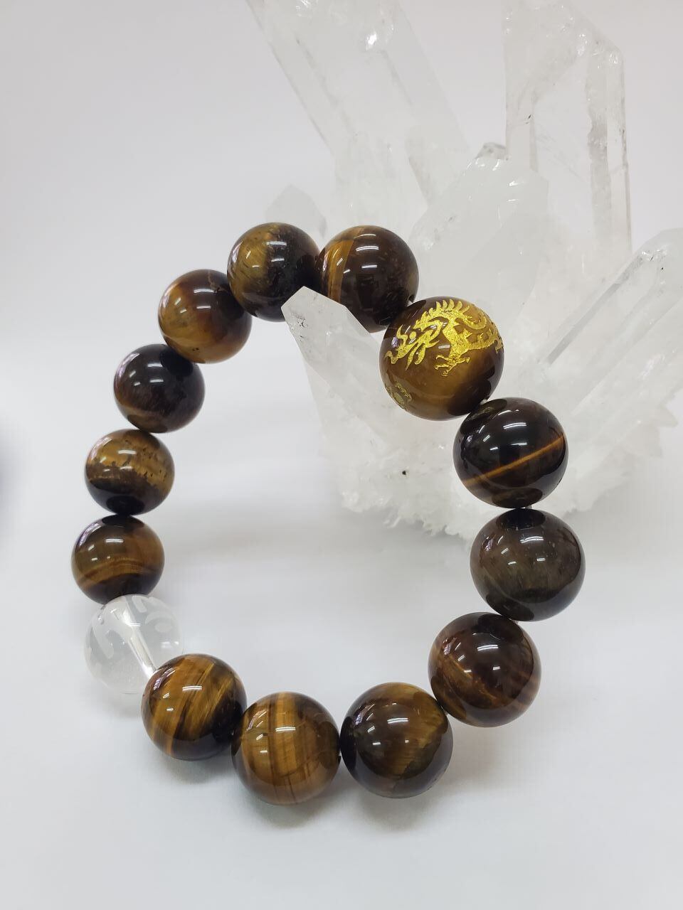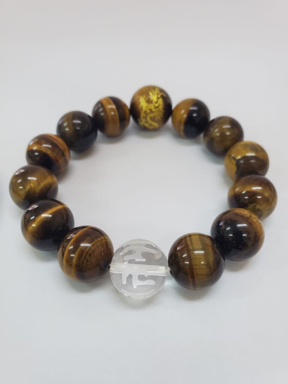 【送料無料】タイガーアイ金の龍彫り 水晶 六字素掘り 金運 仕事運 健康運 14㎜・16㎜オリジナルブレスレット