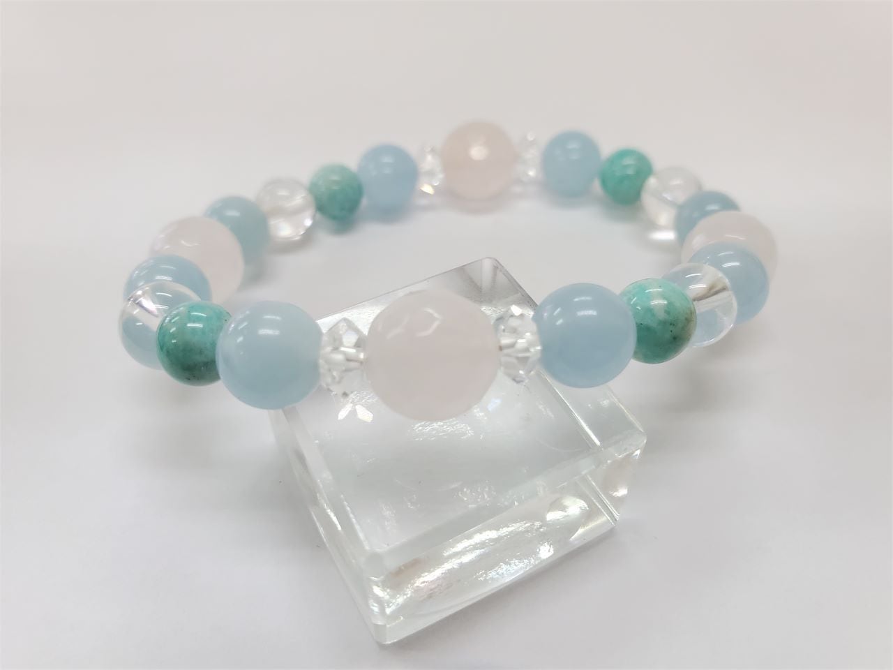 【送料無料】ローズクォーツ アクアマリン アマゾナイト 水晶 恋愛 癒し オリジナルブレスレット