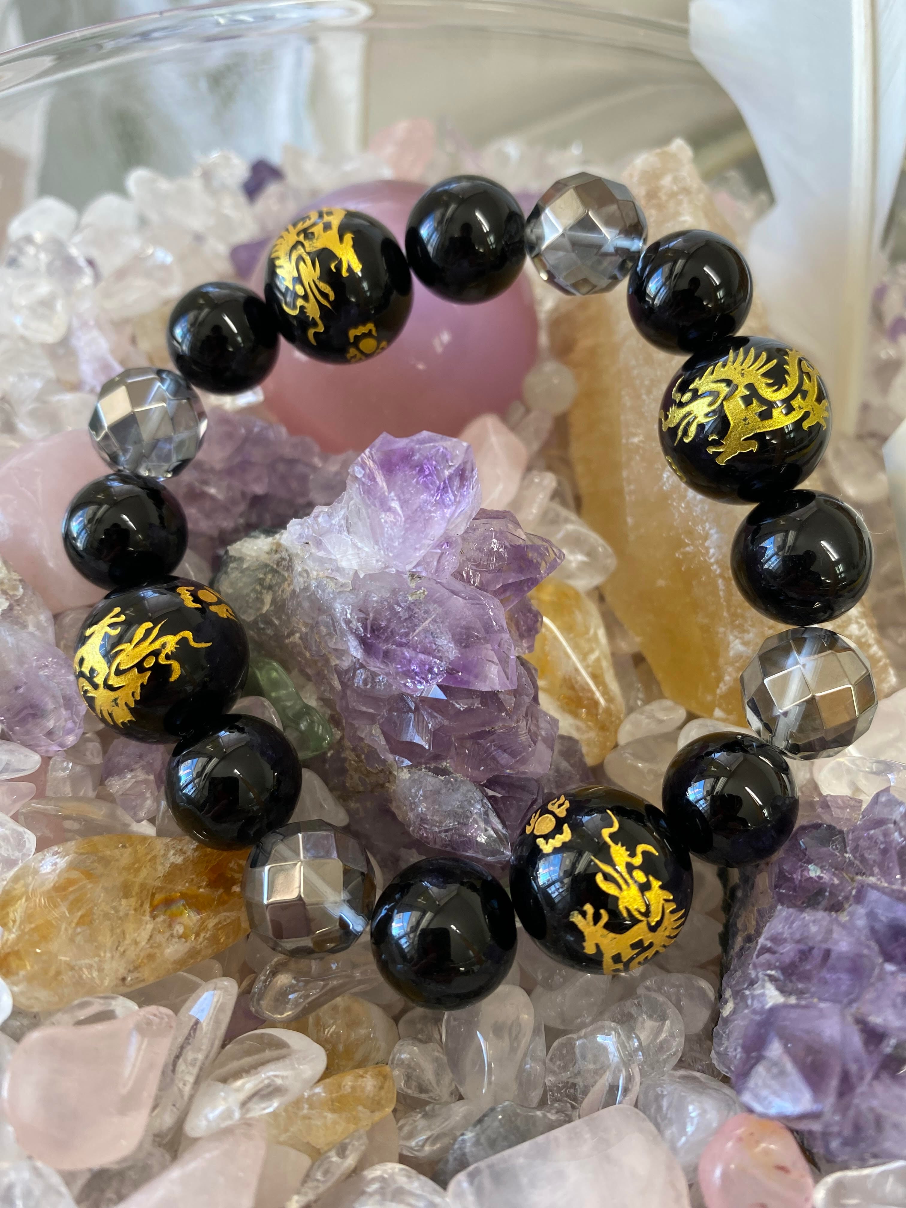 オニキス×龍は、厄年から身を守る、邪気払い、運気の再生の効果があります。